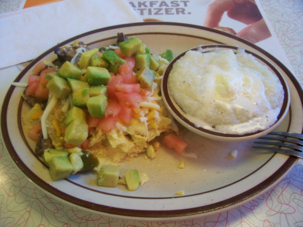 Denny has a new concept. A smaller footprint with the exterior like a chrome dinner from the Northeast. I encountered it in Seabrook Texas next to my motel. A far ranging menu along with it being open 24 hrs should make for some profit. It being in Texas it of course had a Texas menu flyer on the table. I opted for Ribeye Migas with grits. Standard scrambled eggs and fried tortilla strips bumped up with avocado cubes and pieces of ribeye steak. The ribeye was tender and well seasoned and the eggs hit the spot. The grits were unfortunately the instant type and not worth eating. Still a nice stop for on the road or early morning dinning.